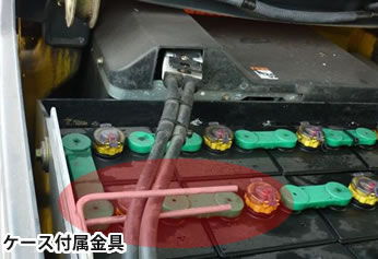 4.古バッテリーから ケース付属金具・コネクター付属金具を外し、新しいバッテリーへ同様に付け替えて下さい。